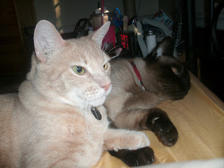 This is the home for stories about my Teenage Mutant Ninja Kitty Horde (and the household that feeds them)! Currently comprised of three Tims (not Toms, they're neutered) and two Princesses (no longer Queens!). They are all rescue cats. Come in and meet them! It's also where I talk about the latest information about the CafePress store for Kat's Kats. This store has great gifts for cat lovers made from my original art. From postcards to mugs to shirts, there are cats for all occasions.